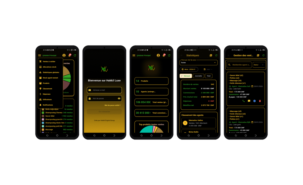 HakkilLuxe est une application mobile et desktop développée par Hakkil Digital pour accompagner les entreprises de distribution, notamment dans le secteur cosmétique, dans la gestion complète de leur activité commerciale.